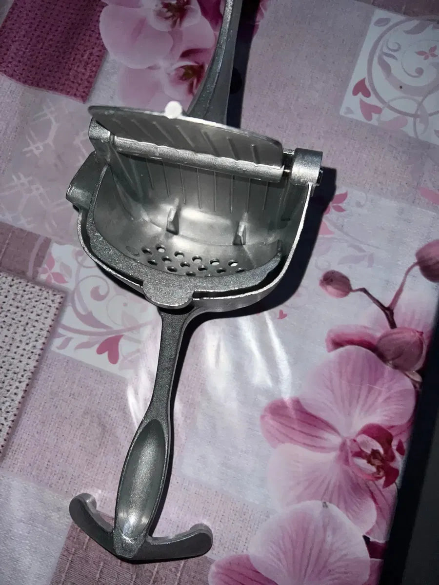 Ya no necesitas electricidad ni herramientas complicadas. Simplemente coloca la fruta en el exprimidor, aprieta las asas y disfruta de un jugo puro y sin semillas.